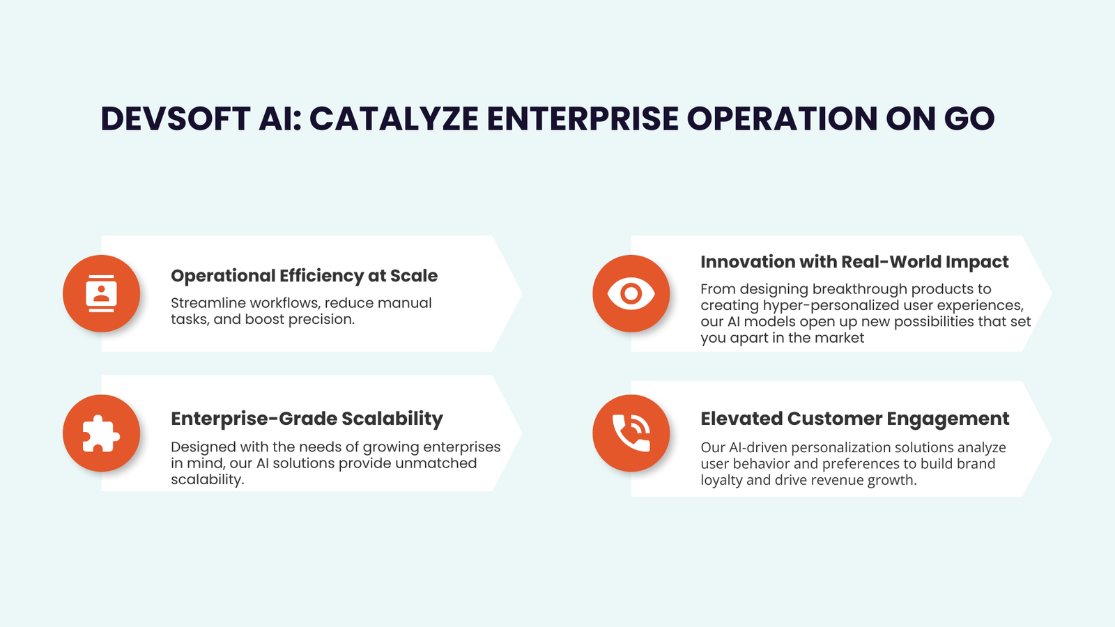 Harness advanced AI, including LLMs, to enhance decision-making, optimize operations, and extract actionable insights, driving efficiency, innovation, and smarter business outcomes.
